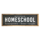 12x36 personalized homeschool sign in your choice of black, white or green background