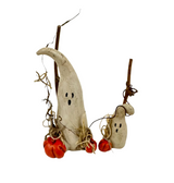 Resin figure ghosts with pumpkin and twig accents. Set of 2. | Perfect on a counter, tabletop or shelf for spooky season