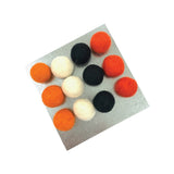 Set of 12 felt ball magnets in light orange, dark orange, creamy white and black