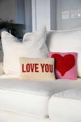 Pink hook pillow with red heart