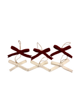 Set of six tiny bow ornaments | Three of each color: Natural and Red, Pink and White or Burgundy and White
